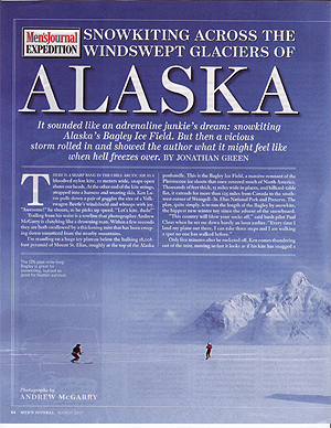 It sounded too good to be true: a sort of wilderness snow-kiting festival. This first trip, Schenk added, would be a sort of tester. There were going to be representatives from Mountain Hardware who would supply cozy tents and plush sleeping pads; we’d have Alaskan guides, brand-new kites to try, and anything else we’d need for a pioneering trip to the newest snow-sports frontier. Schenk had sold me. So I booked up.