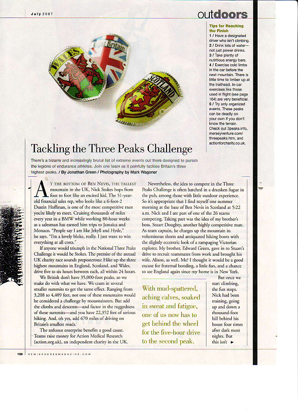If anyone was going to triumph in the Three Peaks Challenge it was going to be him. The premise of the annual charity U.K. race sounds preposterous: hike up the three highest mountains in England, Scotland, and Wales, driving five to six hours between each, all within 24 hours. Ranging from 3205 to 4,408 feet, no single one would be considered a challenge by mountaineers. But add the climbs and descents and you have 22,346 feet of hiking.