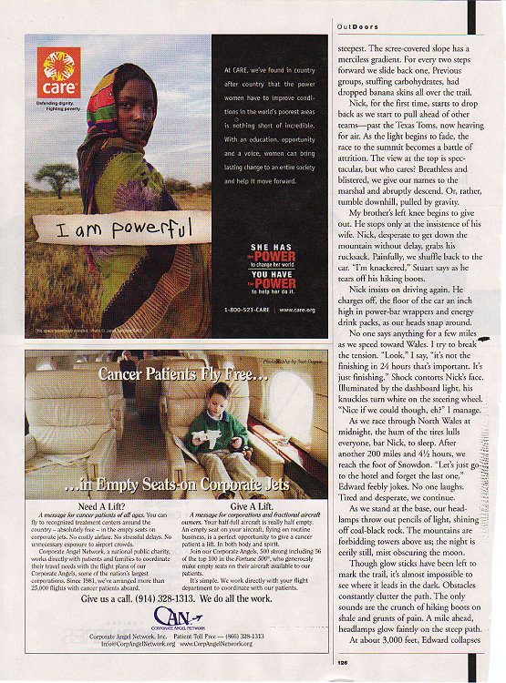 Nick, the aggressive salesman who wins at any cost – his body cramping with lactic acid - stops and thinks about quitting, maybe for the first time in his life. This is beyond bad – it’s dangerous. The weather has suddenly turned and visibility has withered to five feet, making it impossible to see the treacherous path ahead. Nick begins to slip into delirium. A gusting 30mph wind rips at his Gore-Tex jacket and brings a wind-chill of zero. Misted breath, briefly illuminated by his headlamp, jets from his nostrils in a fast, halting rhythm. His skin is grey and waxy. There are dark hemispheres under his eyes. “I feel dizzy,” he wheezes. “I gotta stop.” He slumps in a slimy rivulet that seeps into his pants and drops his head in his hands.