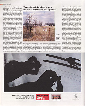“You had the luckiest escape of your lives,” says Jimmy, the following day. “Normally they beat fire out of your ass. I would have been expecting to make you a new pair of teeth today.” The only reason we weren’t attacked is that Jimmy had vouched for us. But now however, the one cocker who decided to trust the press will now be outlawed by his own community. “Y’know,” says Jimmy sadly. “I’ve spent twenty years building up my reputation in this sport and I’ve lost it overnight.”