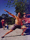 “This body has not been made with steroids or protein drinks,” spits the bronzed, hulking figure standing over me.” He arches his back and lurches forward into a full flex of his upper body, gazing down at his puffed-out chest and arms like steel rope. It’s 90 degrees and the air is dense with humidity. The sweat makes his body shine if he’s oiled up for competition. “You people have to use drugs to get this,“ he says. “You cheat.” Then he lowers himself to a crude black weight bench and begins pressing up 300 pounds in short, irritated thrusts.